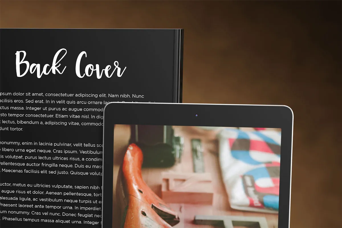 یک موکاپ کتاب روی میز در کنار تبلت که می توانید برای ارائه و معرفی تمام عیار کتابان استفاده کنید. عناصر و لایه های هر کتاب یک گروه جدا قرار دارد و به راحتی قابلیت حذف شدن دارد.